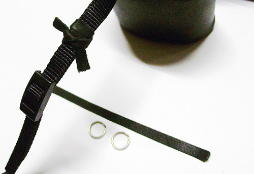 ストラップを留めるのは、上記写真の様に革紐で括ってみても面白いと思います。