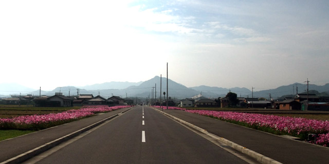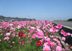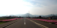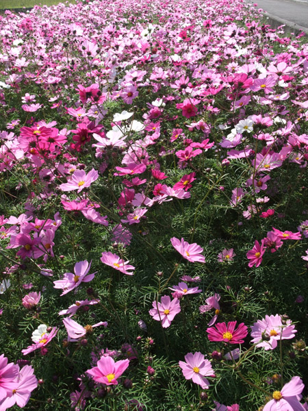 休耕田に植えられた道端のコスモス (2009/11/8)