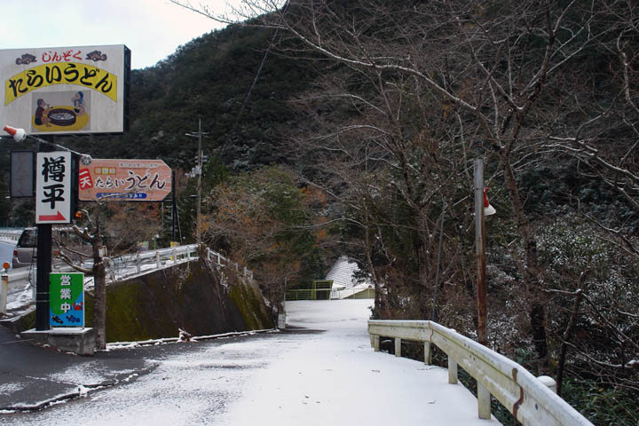 この地方では珍しい12月の積雪。場所は県境の徳島の宮川内ダム近辺です (2014/12/17)