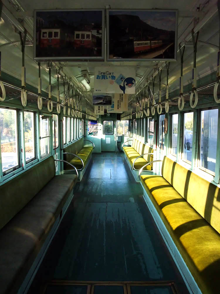 近所の道の駅[源平の里むれ] の古いタイプの琴電展示車と、裏を走っている現役の琴電。(2017/12/25)