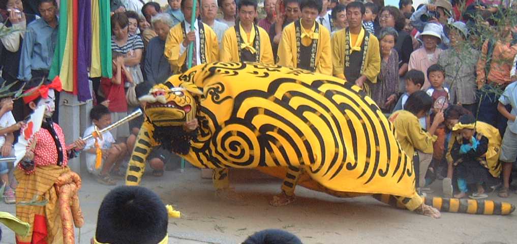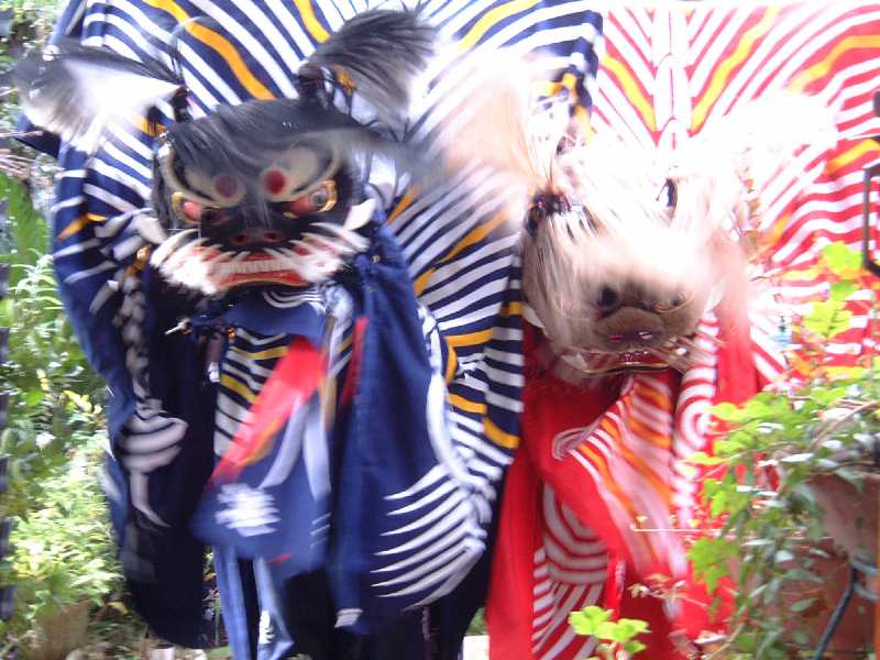 白鳥神社での"虎獅子"と普通の獅子舞 (2001/10/8)