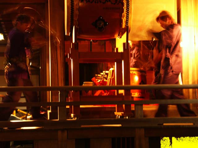 練習中の松原太鼓/白鳥神社 (2000/12/8)